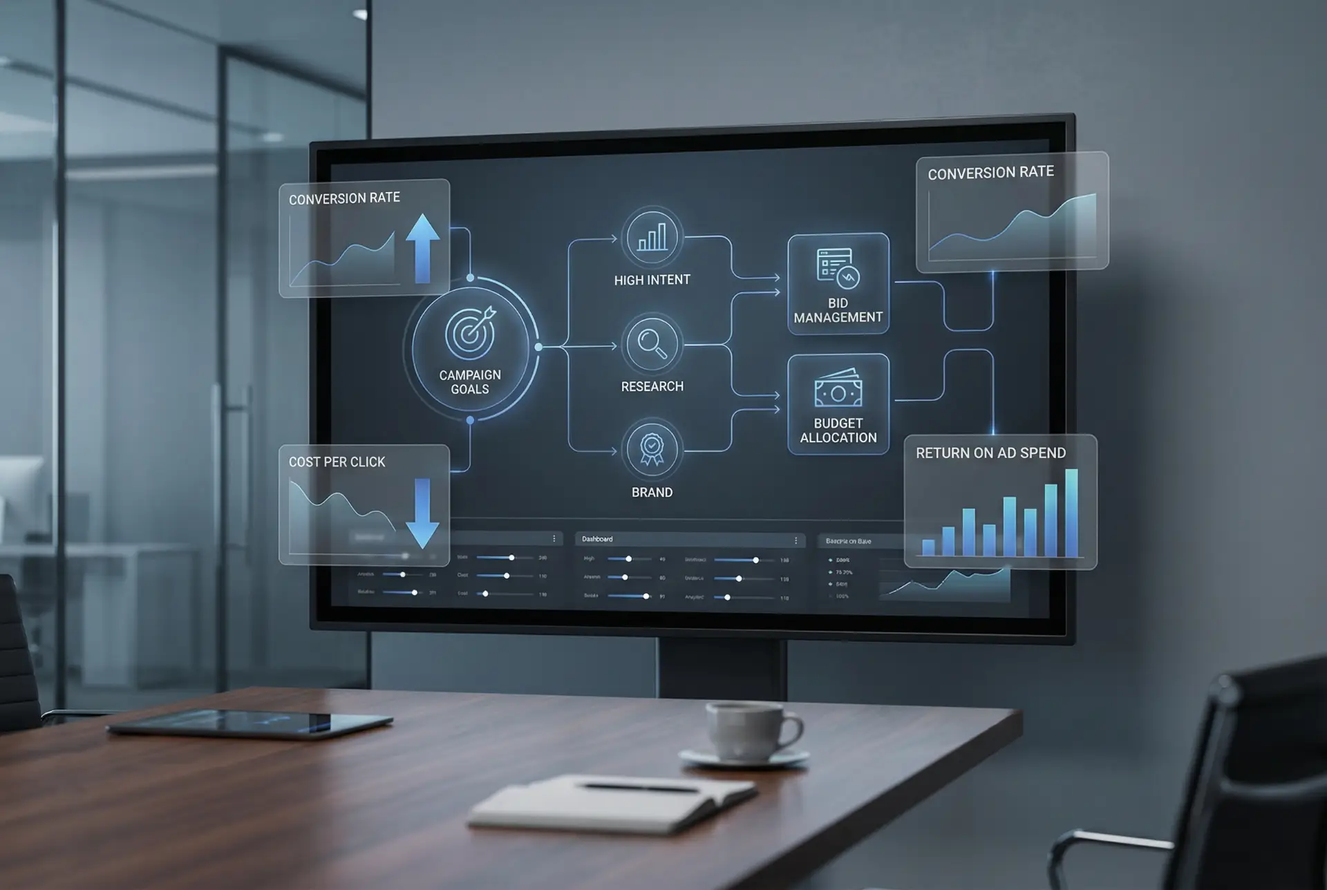 We continuously test ad copy, bidding strategies, landing pages, and audience signals to improve performance.
